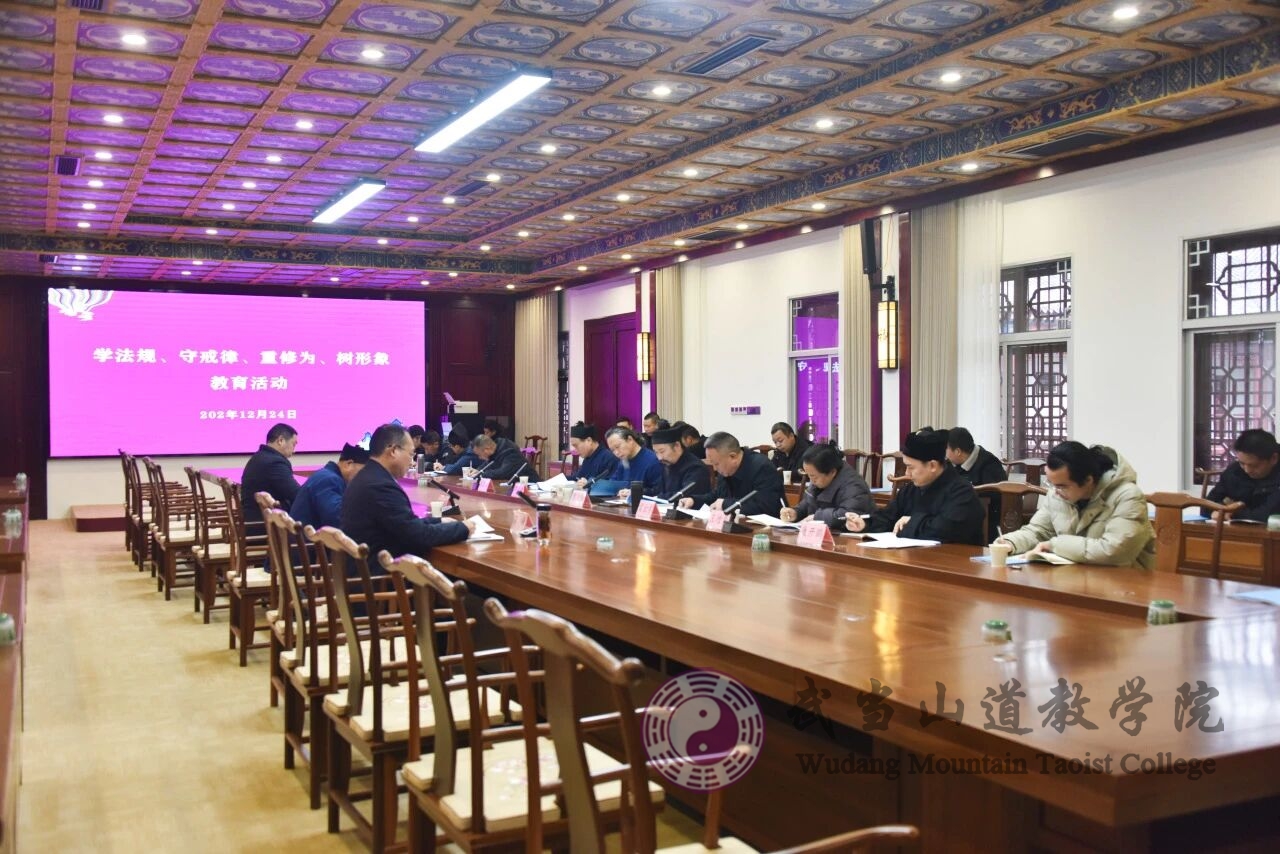12月24日,武当山道教学院组织召开“学法规、守戒律、重修为、树形象”专题教育活动,学院全体教职员工参会学习。