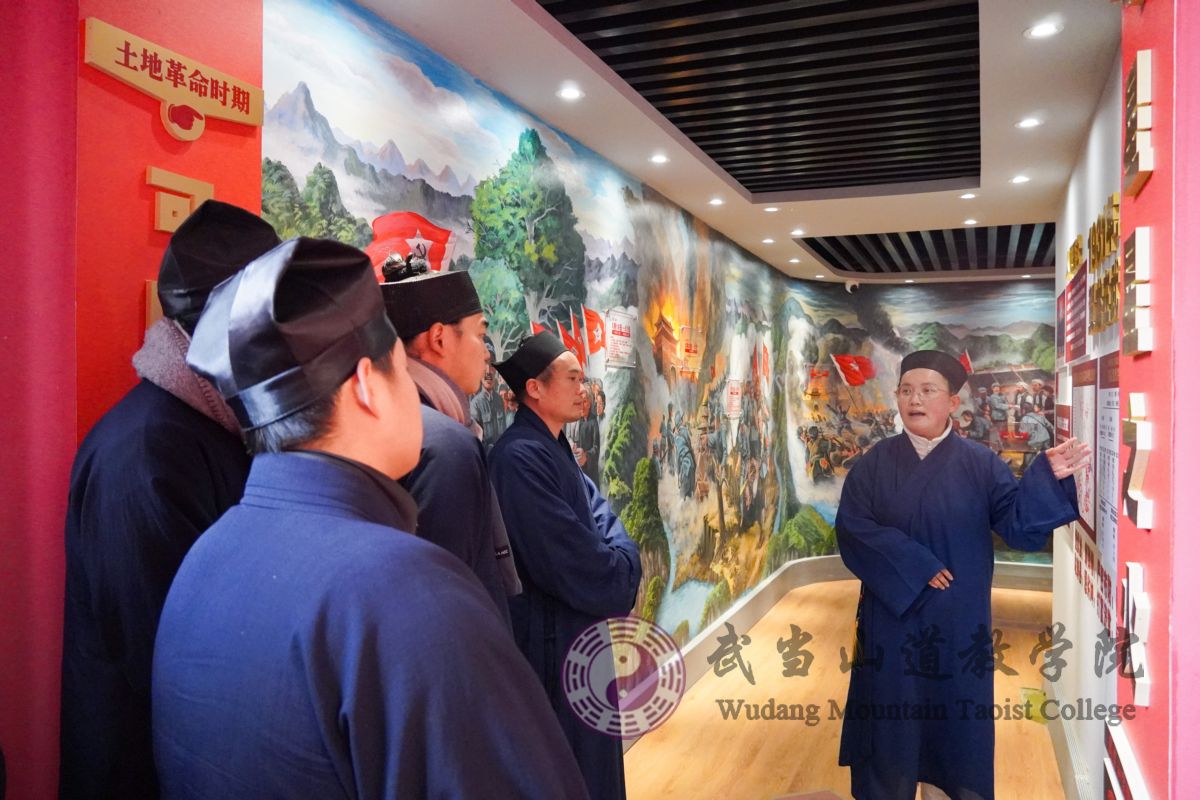 活动中,师生专程前往紫霄宫进行朝拜与学习。紫霄宫不仅是道教重要宫观,亦为红三军司令部旧址所在地,设有“红三军在武当山”爱国主义教育展览馆。师生通过观摩历史实物、图文资料,重温了贺龙率领红三军在此战斗的革命岁月,深刻感受到道教界在革命历程中与党同心、支持抗战的优良传统,强化了师生对国家、民族与文化的认同。