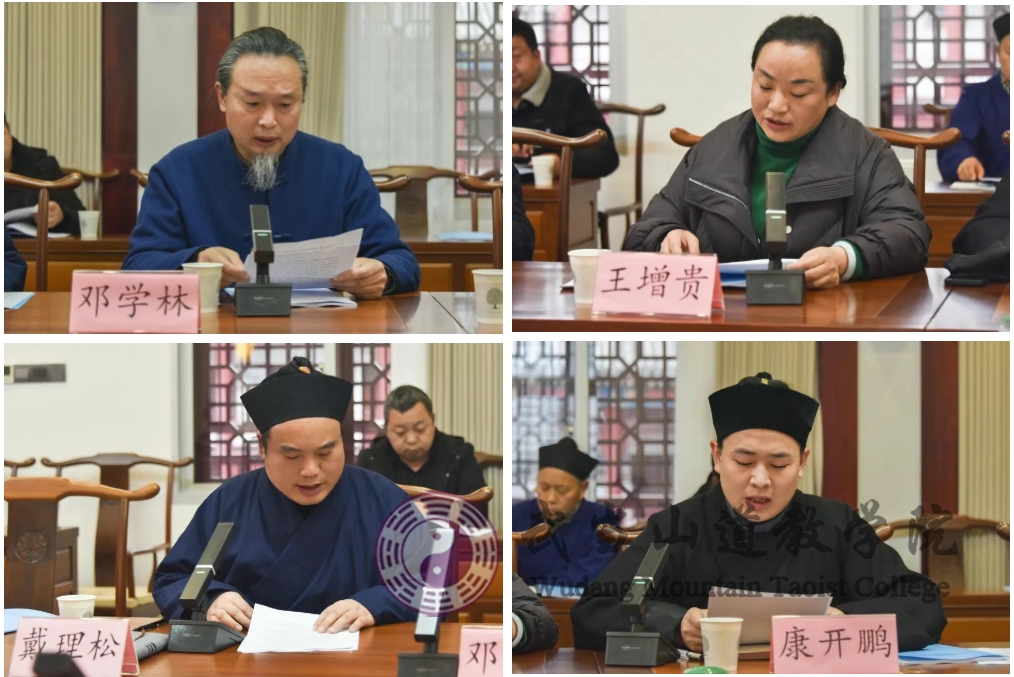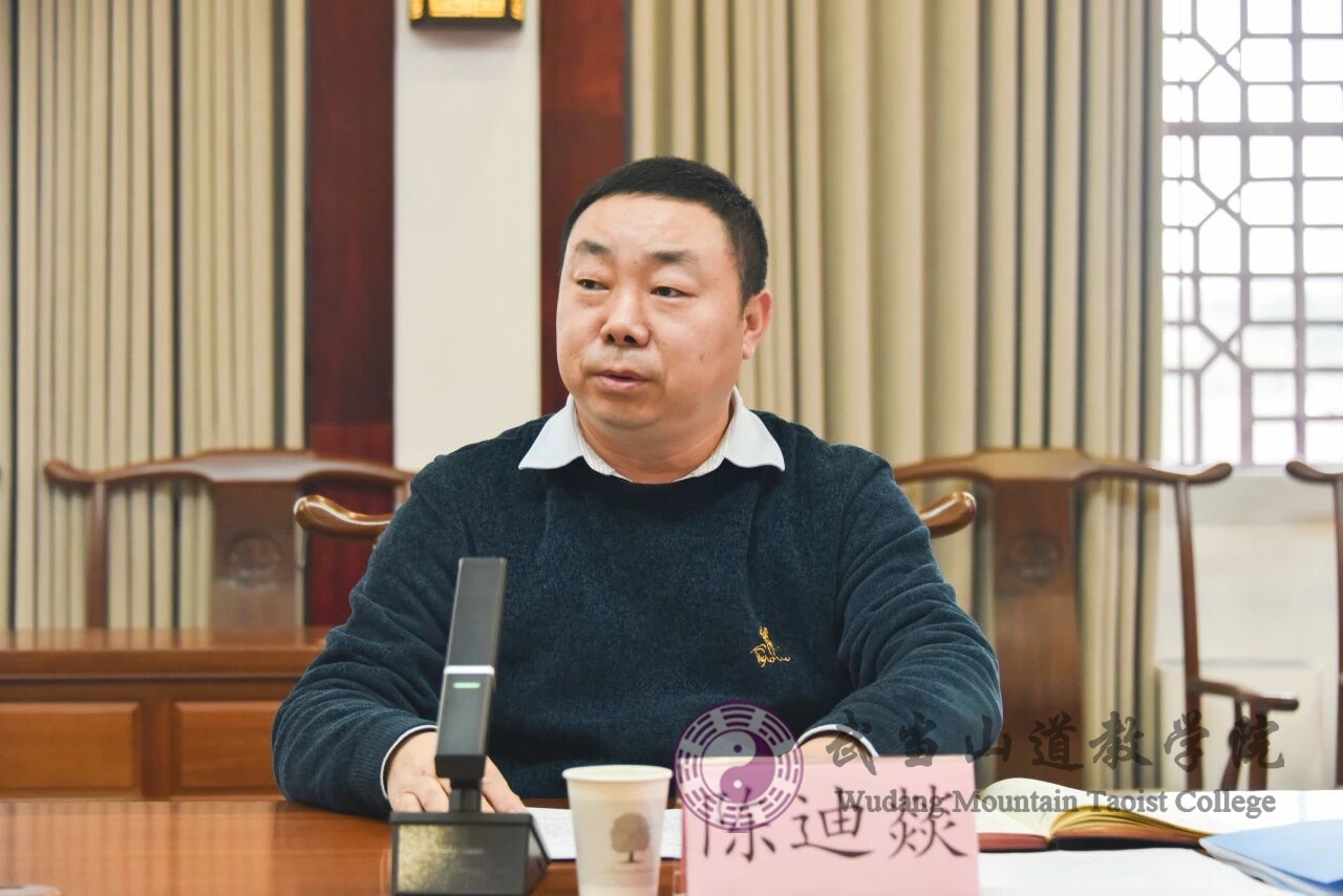 丹江口市宗教团体服务中心主任陈迪燚在发言中指出,学院要继续坚持正确办学方向,持续加强思想政治、爱国主义与法治教育;要深化教学改革,提升人才培养质量,输送更多道教事业骨干;要全面从严治教,夯实道风根基,践行崇俭戒奢;要主动服务大局,发挥武当山文化优势,深化对台港澳及对外交流,讲好中国道教故事,传播中华优秀传统文化。