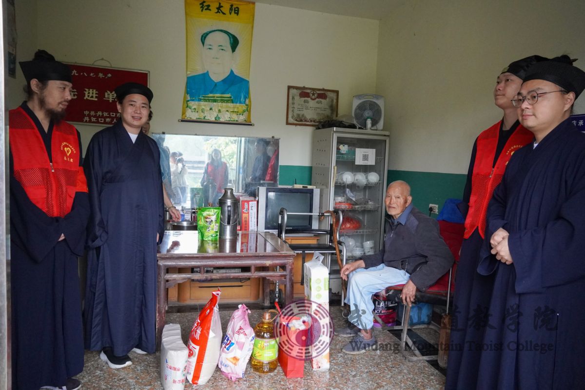 在中华人民共和国成立76周年国庆佳节即将到来之际,为弘扬爱国主义精神,传承尊老敬老、崇尚奉献的优良传统,9月27日上午,武当山道教学院组织师生开展了以“喜迎国庆·情暖初心”为主题的走访慰问活动,前往丹江口市丹赵路街道办事处下辖的茅腊坪村、漫水桥社区、计家沟村、余家营村、三里桥社区等地,看望了20位老党员和退伍老兵。